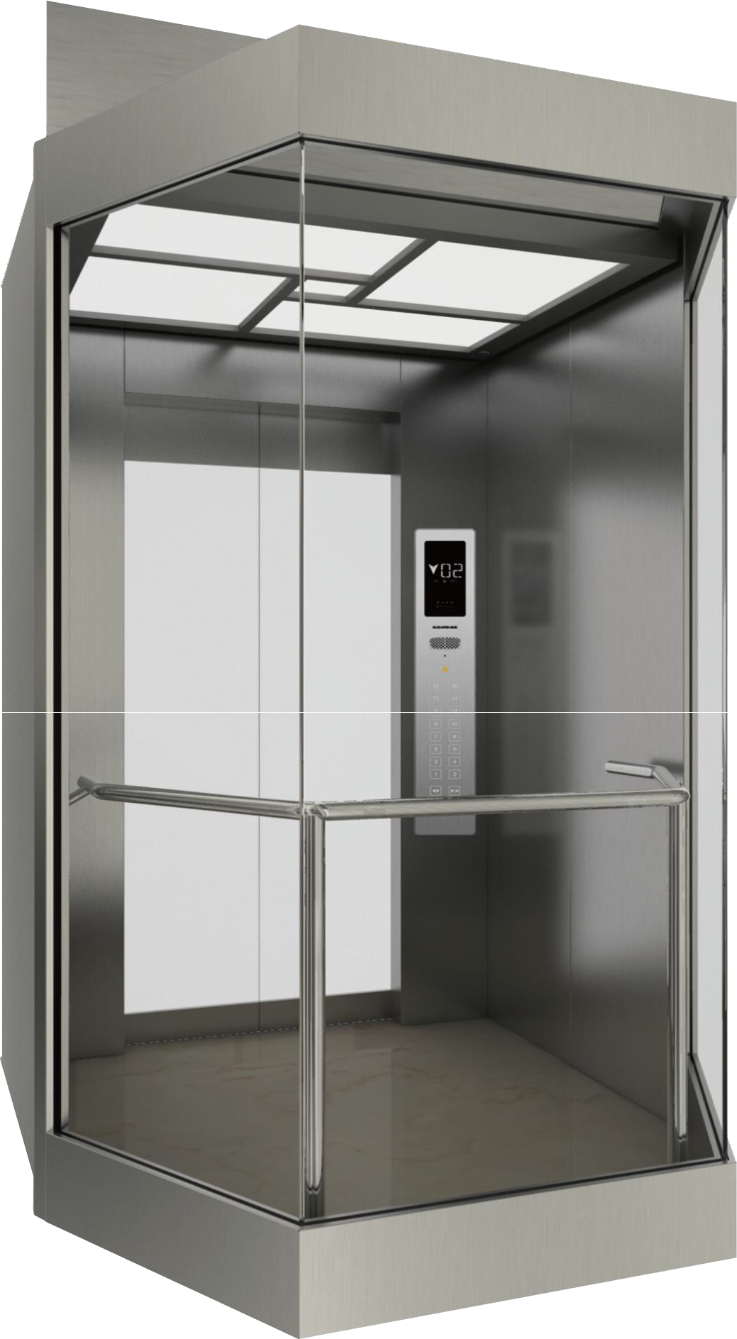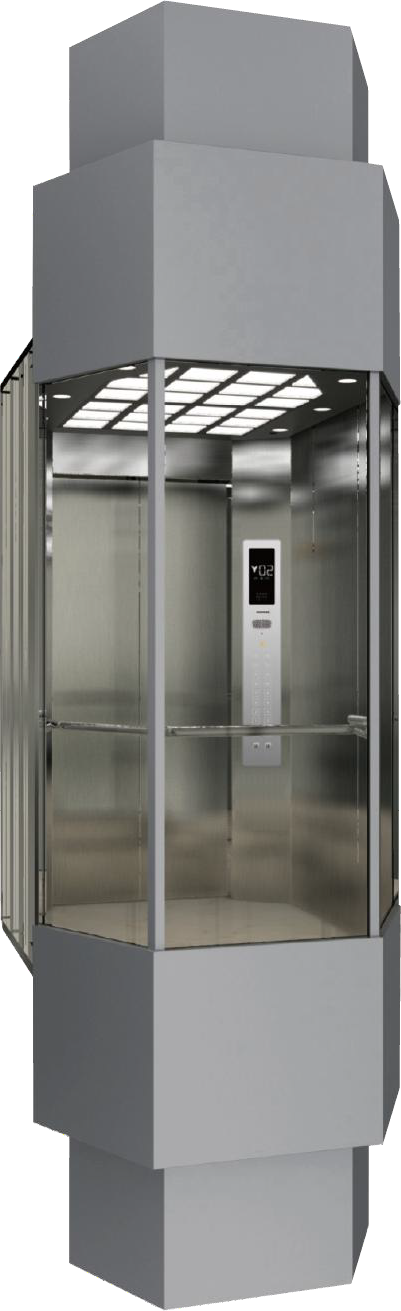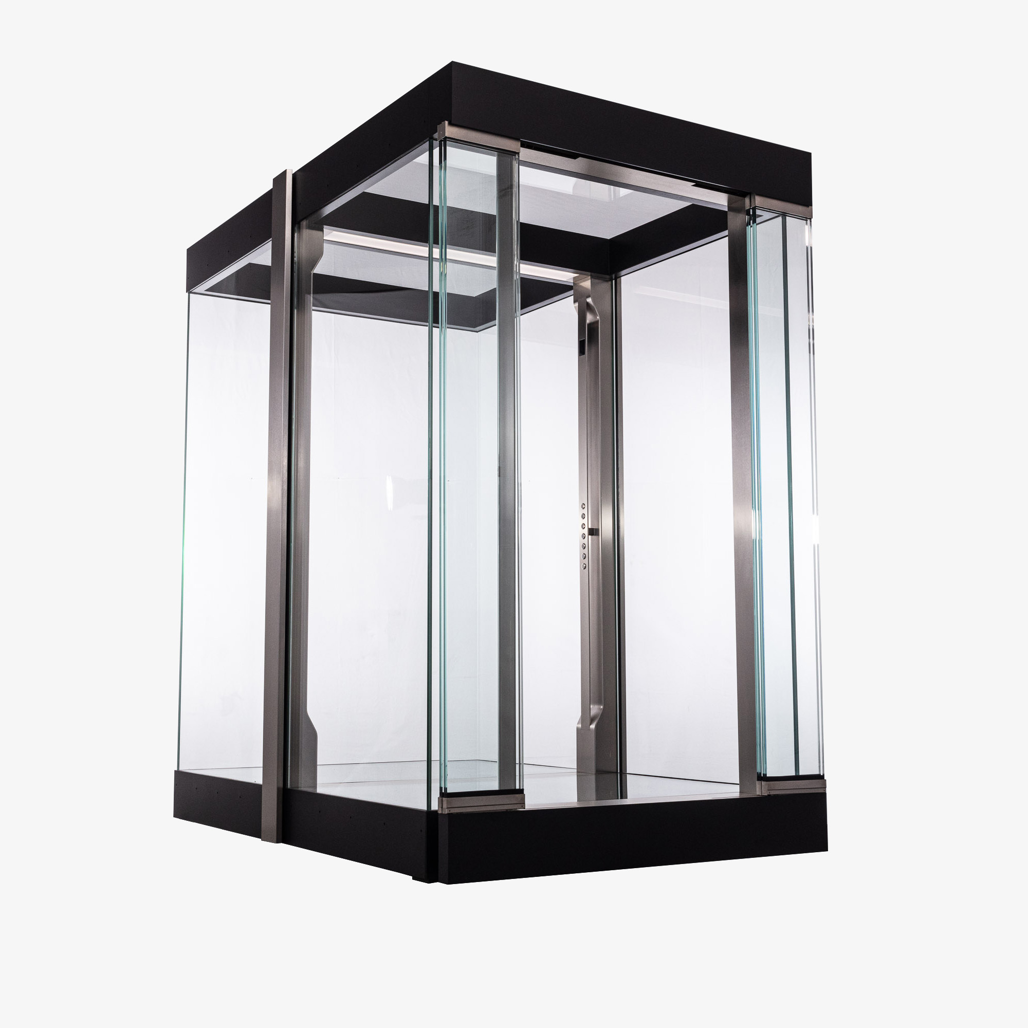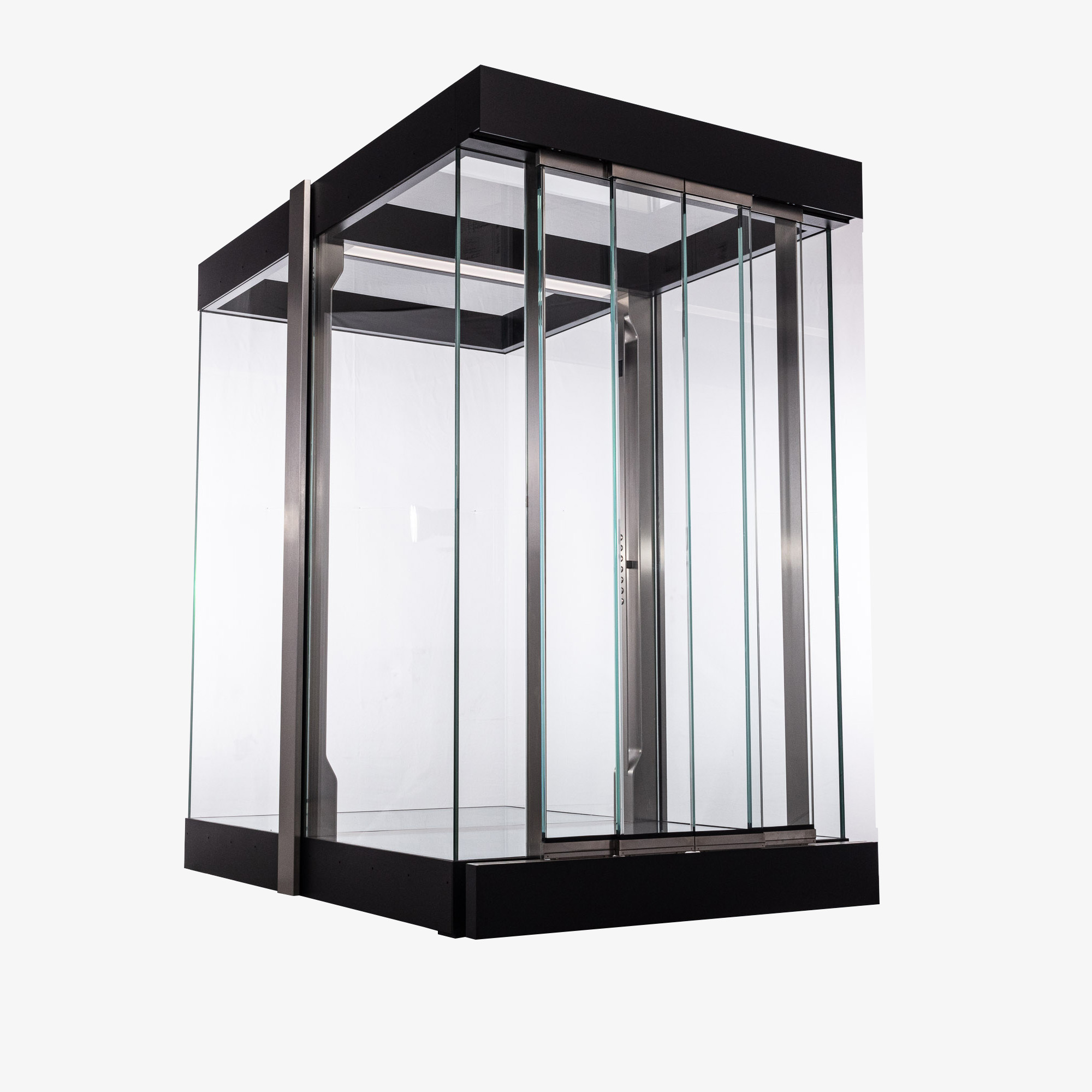 Our timeless design approach is based on support frames that are fully integrated into the cabins, concealing guides and safety devices so that they are not visible. In doing so, we ensure maximum symmetry in all three axes and balance between the materials used and the geometries selected. All cabins are fitted with specially designed and individually manufactured doors and panels.